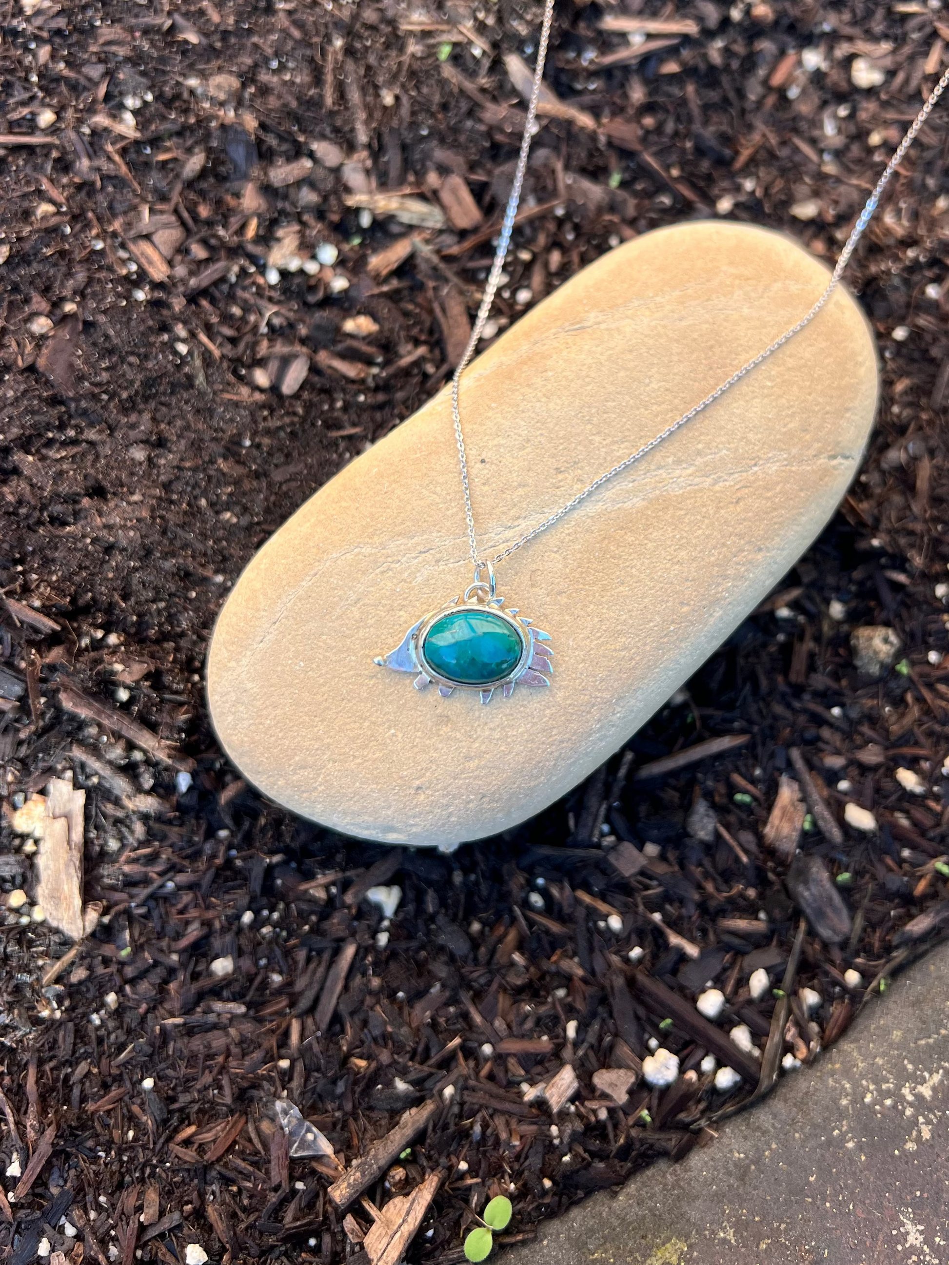 Sterling silver hedgehog pendant necklace. This hedgehog is extra dear to me because hedgehogs have always been one of my favorite animals, and seeing this idea come to life has been so special. The hedgehog is hand sawed, engraved, and soldered. This hedgehog is named Remy and he is ready to join you on your adventures!