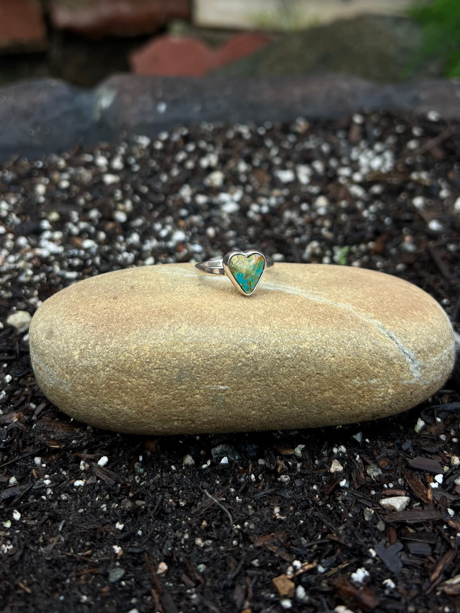 Tiny Turquoise Silver Heart Ring - Size 7.5